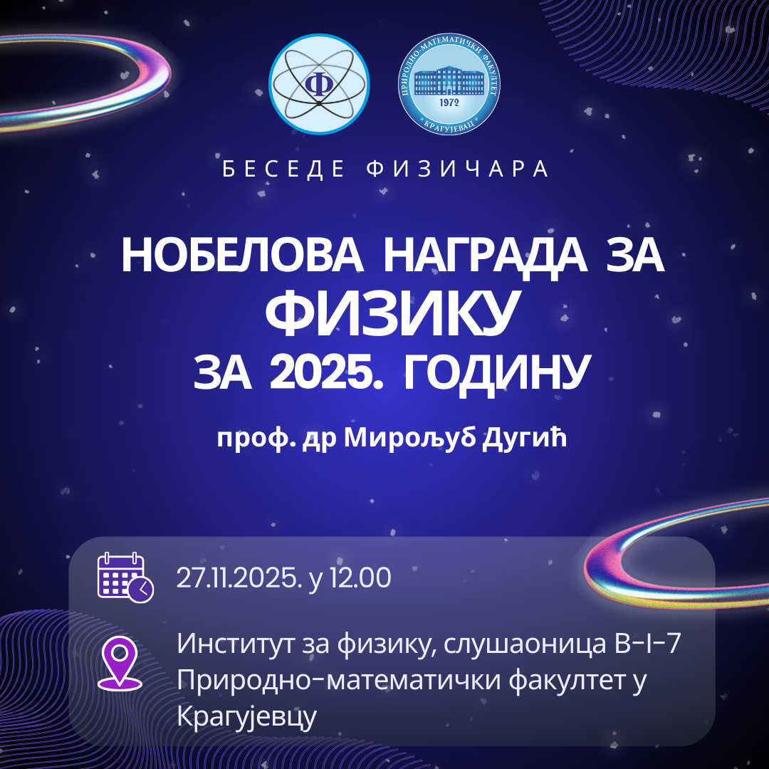 Време и место: четвртак 27.11.2025. у 12 часова, Институт за физику, Слушаоница 3